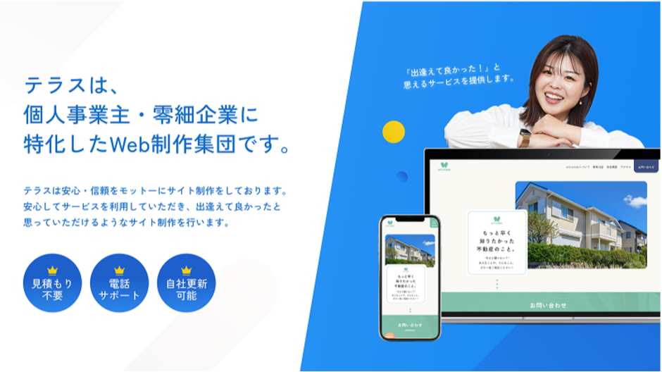 現在は個人事業主 or 小規模事業者向けのWebサイト制作チーム「Terace」を運営しています。