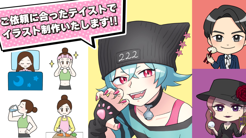 似顔絵や挿絵、アニメ風タッチのイラストなどもお受けしています。