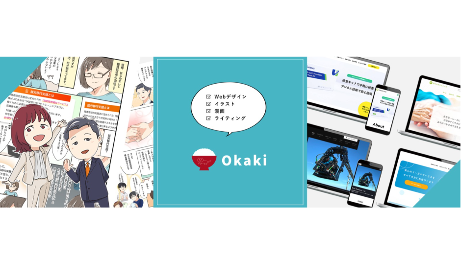 Webサイトデザイン制作、システムUI設計、イラスト漫画制作・就職デザイン添削相談業務、ライティング事業